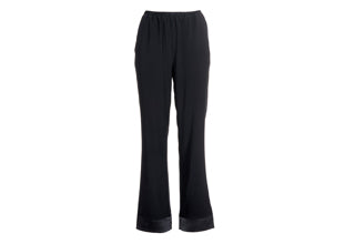 Behagelig bukse med strikk i livet, innsydd stripe i siden og kant nederst på benet.